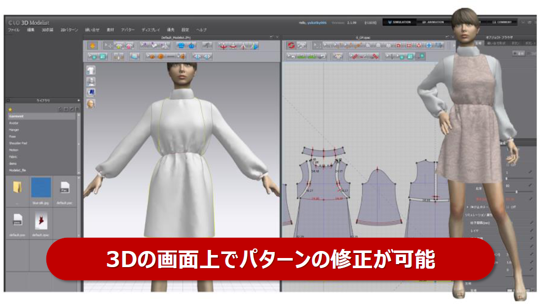 CLO 3D Enterpriseソフトによりパターンを2Dから3D、3Dから2Dへの落とし込みが可能