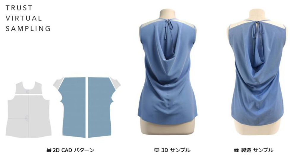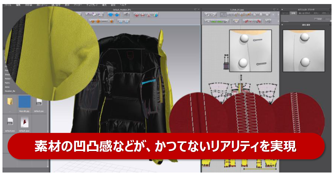 2DのCADパターンから仮想サンプルを見てみると、実際に作成したサンプル品と大差がないことがわかります。